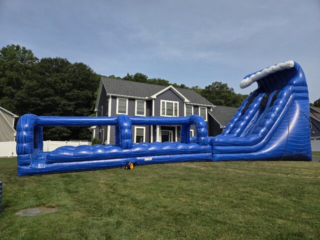 Make a splash at your next party with the 22ft Splash Down Water Slide with Landing! This massive inflatable is built for thrill-seekers, featuring dual racing lanes that launch riders down into an extra-long Slip ‘N Slide for the ultimate ride. At over two stories tall, it’s guaranteed to be the highlight of your event and keep everyone cooled off and entertained for hours!